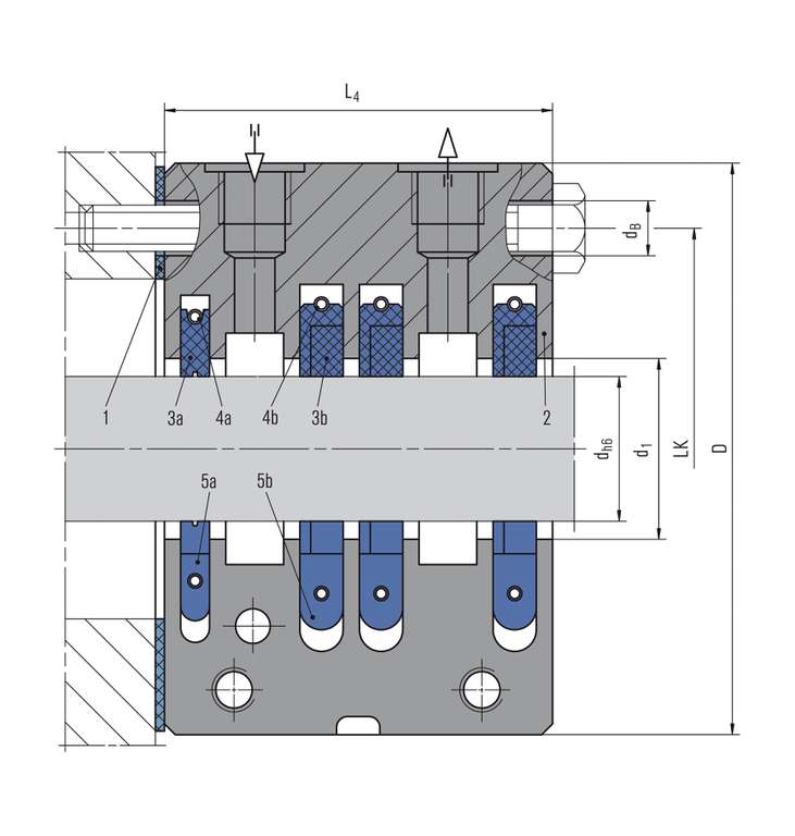 with barrier gas port. The arrangement guarantees a focused barrier gas flow to the process side and keeps gases, solids and mists off the sealing area. In addition the leakage to the outside is reduced.