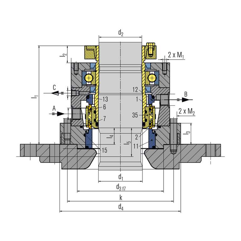 The M461CL will remain closed even during pressure variations or pressure reversal. Operation is possible with buffer fluid (p1max = 6 bar (87 PSI)) or pressurized with barrier fluid as double seal.