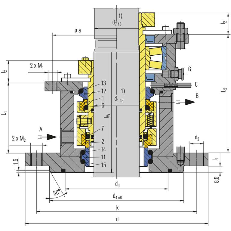 • The M481K and its variants will remain closed even during pressure variations or pressure reversal. Operation is possible with buffer fluid (p1max = 6 bar (87 PSI)) or pressurized with barrier fluid as double seal