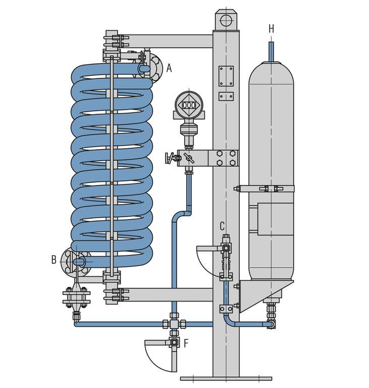 Pressurized barrier system (closed circuit) for use in seal systems with high pressures and/or for hazardous/environmentally harmful processes. The SPO Plan 53C range is available with a pressure booster, cooler (finned tube, water or air cooler with fan) and a wide range of instruments.